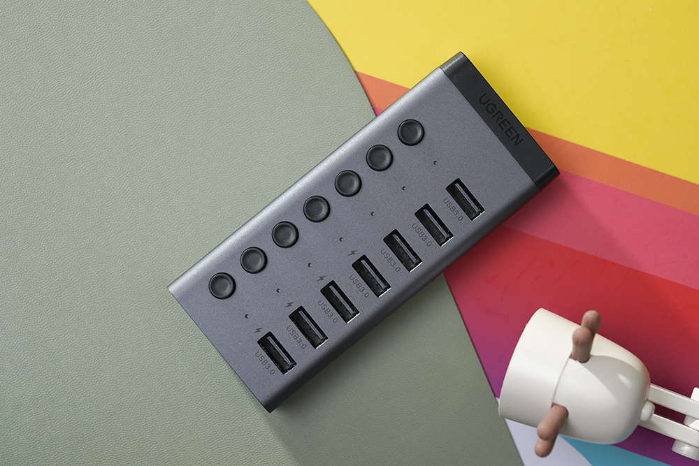 유그린 7-IN-1 USB3.0 허브는 세련된 스타일로 디자인되었습니다. 그리고 7포트로 구성되어 있어서 다양한 종류의 컴퓨터 주변 기기들을 연결할 수 있고 4번부터 7번까지는 충전 기능도 지원합니다.