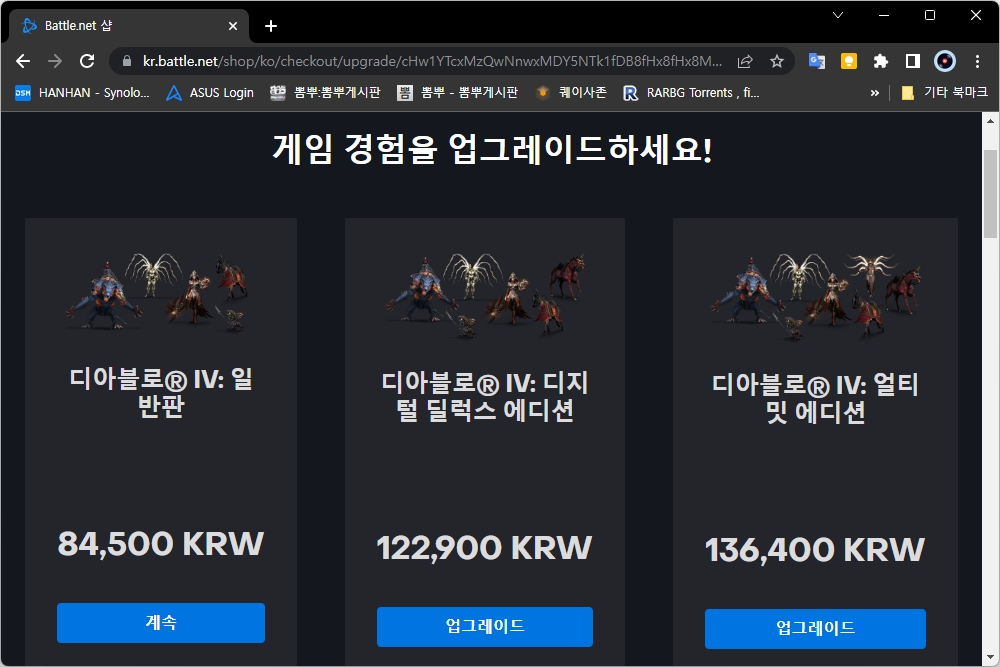 디아블로4는 윈도우 배틀넷과 엑스박스(XBOX) 그리고 플레이스테이션 3가지 버전으로 출시되었습니다. PC판의 가격을 자세하게 확인해 보면 일반판은 84,500원 디지털 딜럭스 에디션은 122,900원 그리고 얼티밋 에디션은 136,400원에 판매되고 있습니다. 사실 상당히 비싼 편이라고 할 수 있습니다.