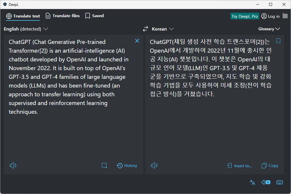 DeepL AI 번역기의 사용법은 간단한 편입니다. 우선 웹 서핑이나 문서를 읽다가 궁금한 내용이 있으면 드래그를 한 후에 Ctrl + C + C 단축키를 누르면 DeepL AI 번역기 앱이 바로 실행되고 해당 내용이 바로 번역됩니다.
