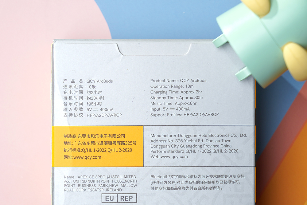 QCY HT07 노이즈 캔슬링 이어폰에는 10mm 다이나믹 드라이버와 6개의 노이즈 캔슬링 마이크가 탑재되었습니다. 그리고 블루투스 5.2를 지원하는 Wuqi WQ7003AR 블루투스 칩셋이 채택되었습니다.