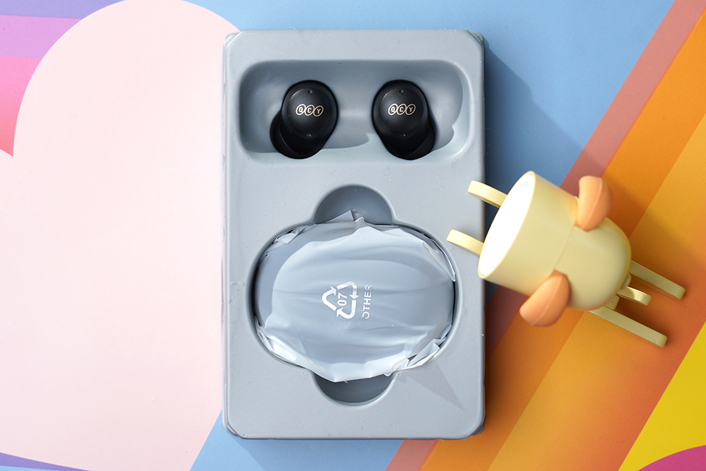박스를 개봉하고 내부를 확인해 보면 QCY HT07 노이즈 캔슬링 이어폰의 이어버드와 충전 케이스가 플라스틱으로 제작된 완충 케이스에 수납된 것을 확인할 수 있습니다. 직구로 구매해도 제품 자체가 손상될 가능성은 작을 것으로 예상합니다.