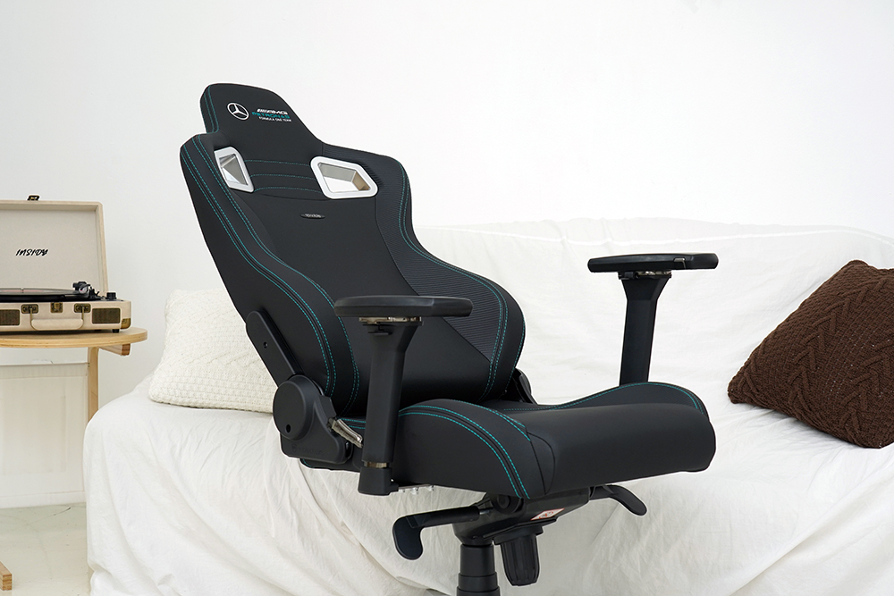 노블체어 에픽 메르세데스 F1 에디션 게이밍 의자는 135도까지 등받이의 각도를 조절할 수 있습니다. 게임을 플레이한 후나 작업을 마치고 잠깐의 휴식을 취하고 싶을 때 활용하면 좋은 편이었고 특히 완전히 젖힌 상태에서도 안정적으로 몸을 받쳐준다는 점이 차별화된 특징이라고 판단되었습니다.