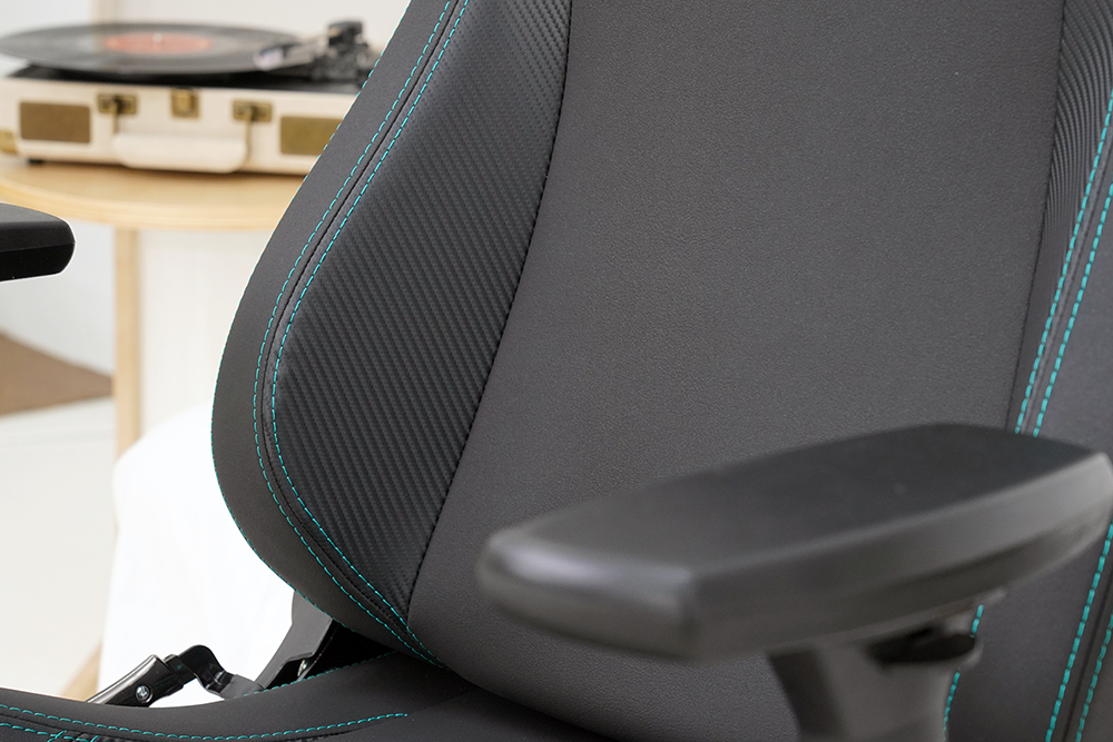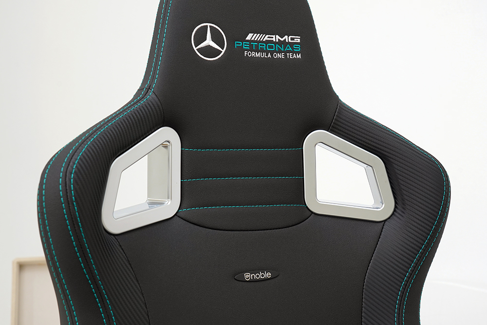 F1 레이싱카들은 보통 무게와 내구성 때문에 카본 파이버로 제작되는 경우가 많습니다. 그래서 노블체어 에픽 메르세데스 F1 에디션 게이밍 의자도 디자인적인 통일성을 위해서 옆면에 카본 이펙트 룩의 사이드월이 적용되었습니다.