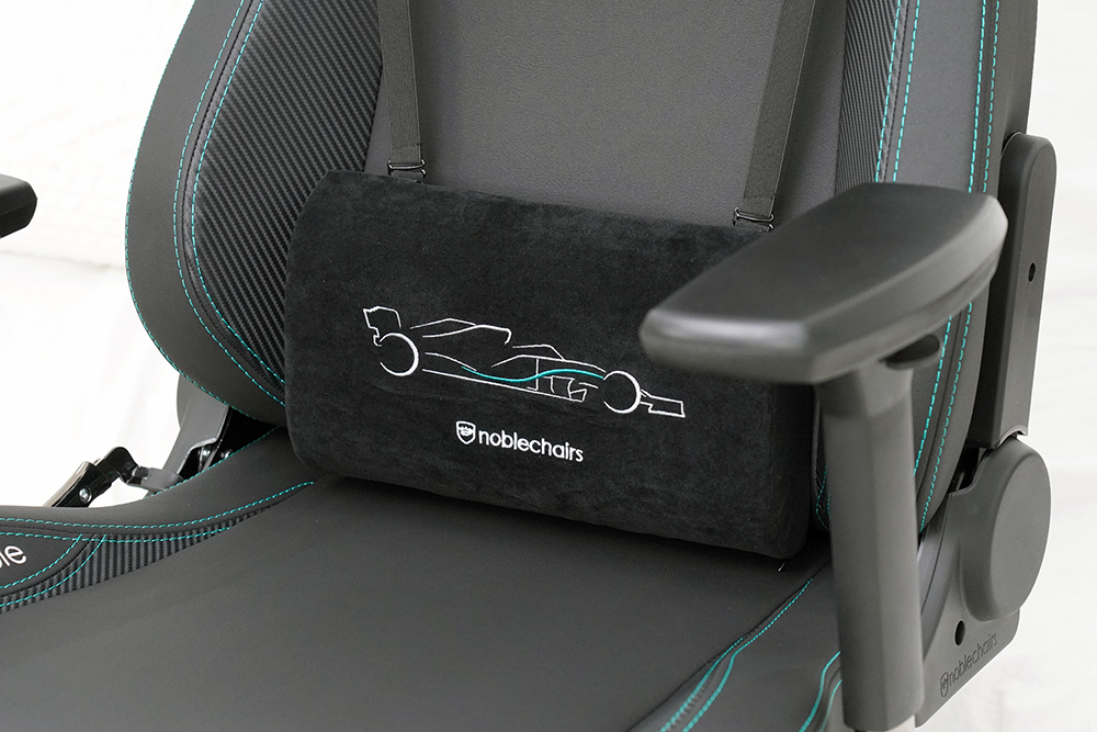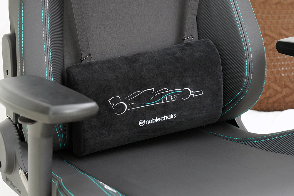 노블체어 에픽 메르세데스 F1 에디션 게이밍 의자의 한 가지 아쉬운 부분은 별도의 각도를 조절할 수 있는 목 받침대가 없다는 점입니다. 그래서 이럴 때는 기본으로 제공되는 머리 쿠션을 이용해주는 것이 좋을 것 같습니다.