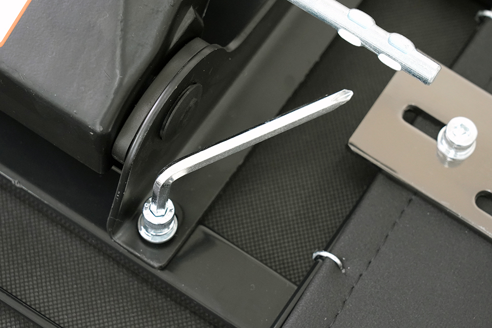 이제 시트와 틸트 메커니즘을 동봉된 나사와 육각 렌치를 이용해서 단단하게 결합해주어야 합니다. 이때 강한 힘을 주어서 와셔 부분이 완전히 밀착될 때까지 돌려주어야 합니다.