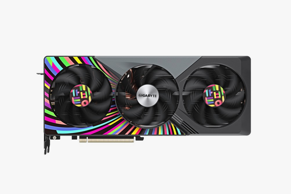 기가바이트 RTX 4070 KOREA 에디션 그래픽카드의 옆면을 살펴보면 16핀 파워 커넥터가 배치된 것을 확인할 수 있습니다. 그리고 GIGABYTE 로고 부분에 RGB FUSION 조명이 탑재되었고 다양한 라이트 효과를 제공합니다.