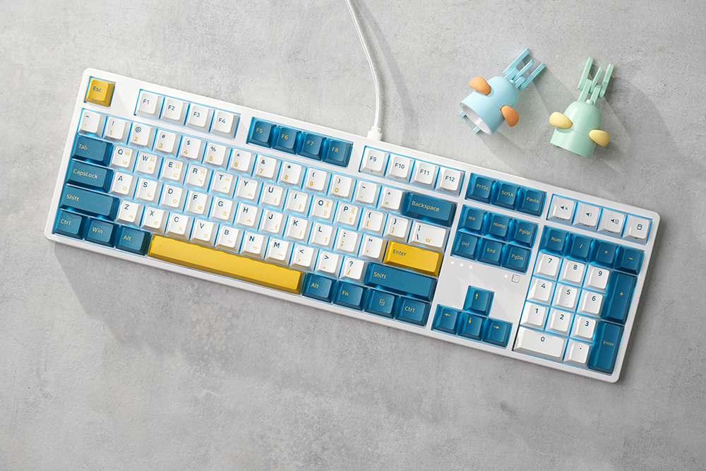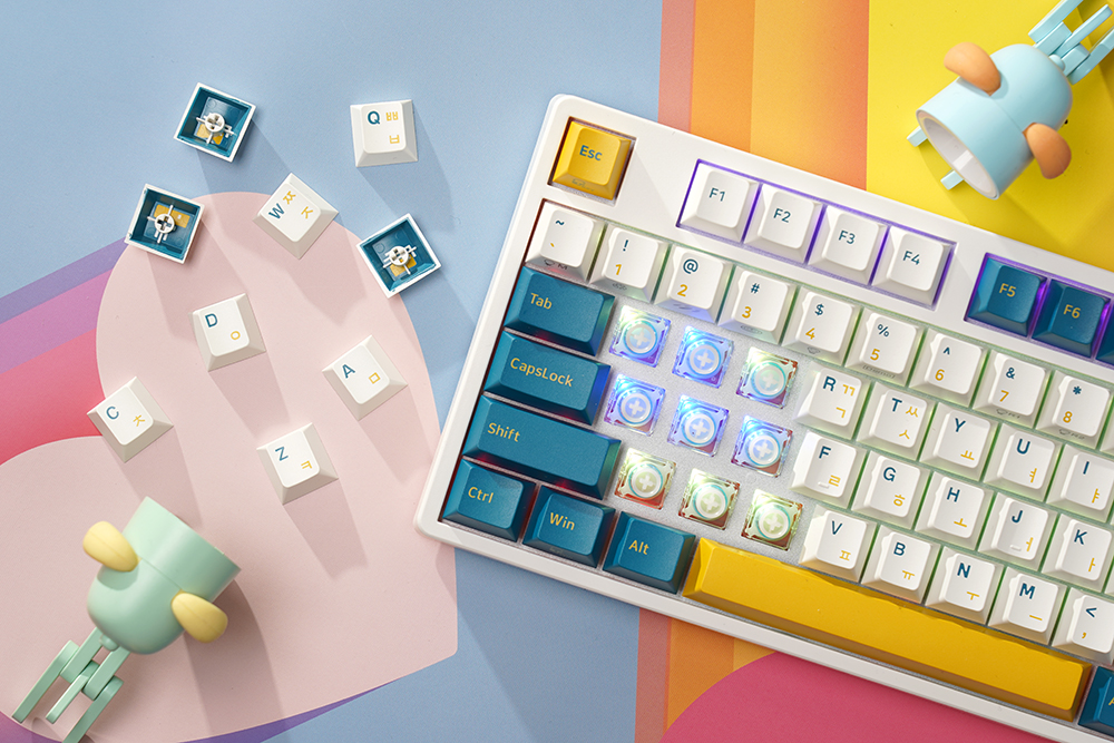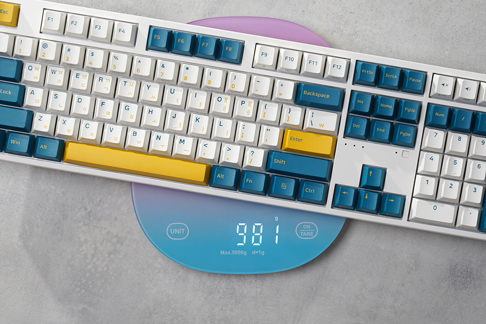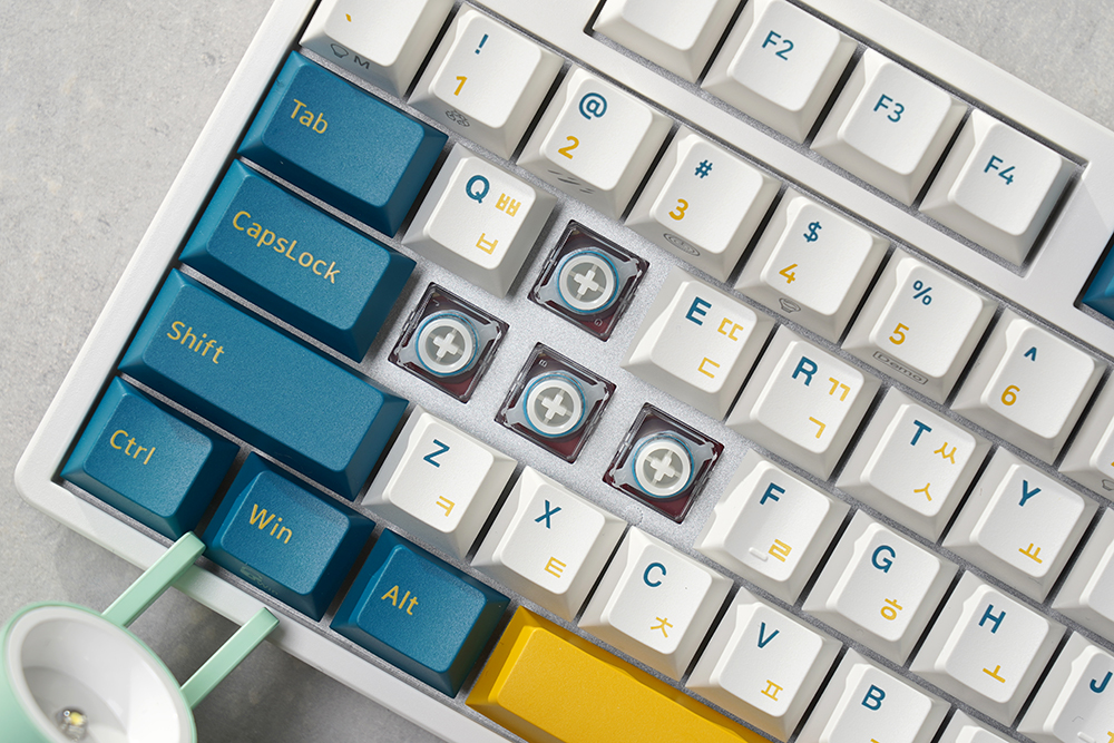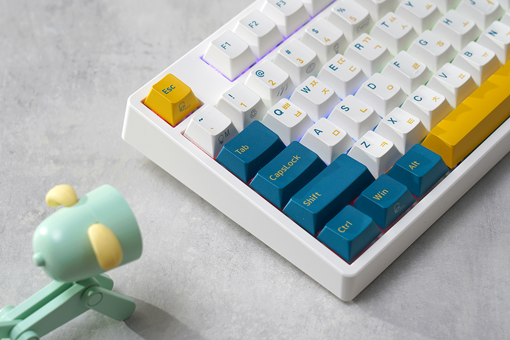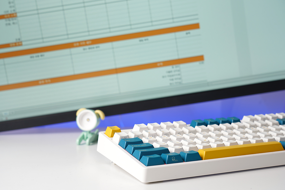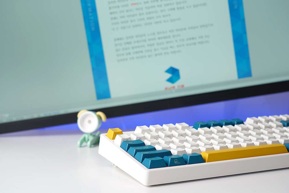 그리고 오랜 시간 작업을 해야 하는 디자이너들이 활용해도 좋습니다. 특히 크림 베이지와 딥 옐로우 그리고 딥 블루 3가지 색상으로 구성된 PBT 삼중 사출 키캡의 깔끔한 디자인과 촉감은 디자이너들도 만족할 수 있을 것 같습니다.