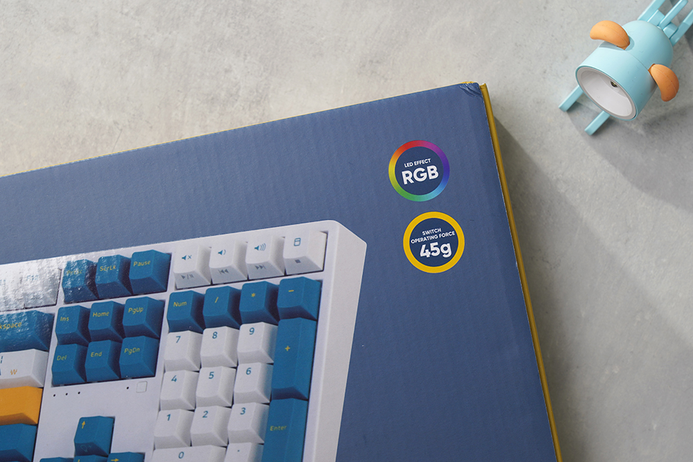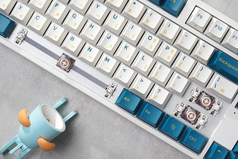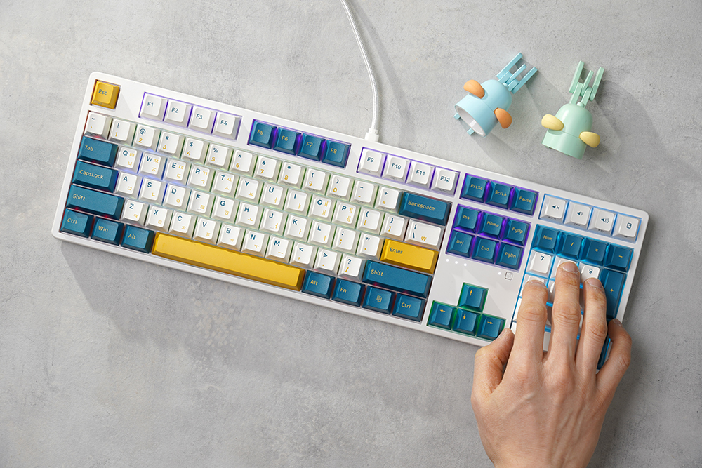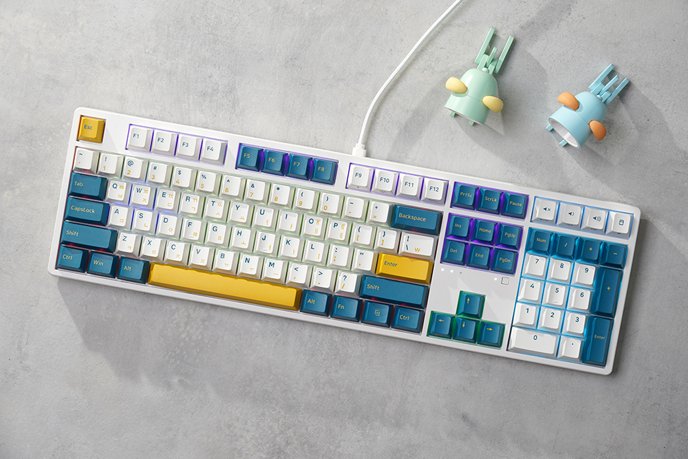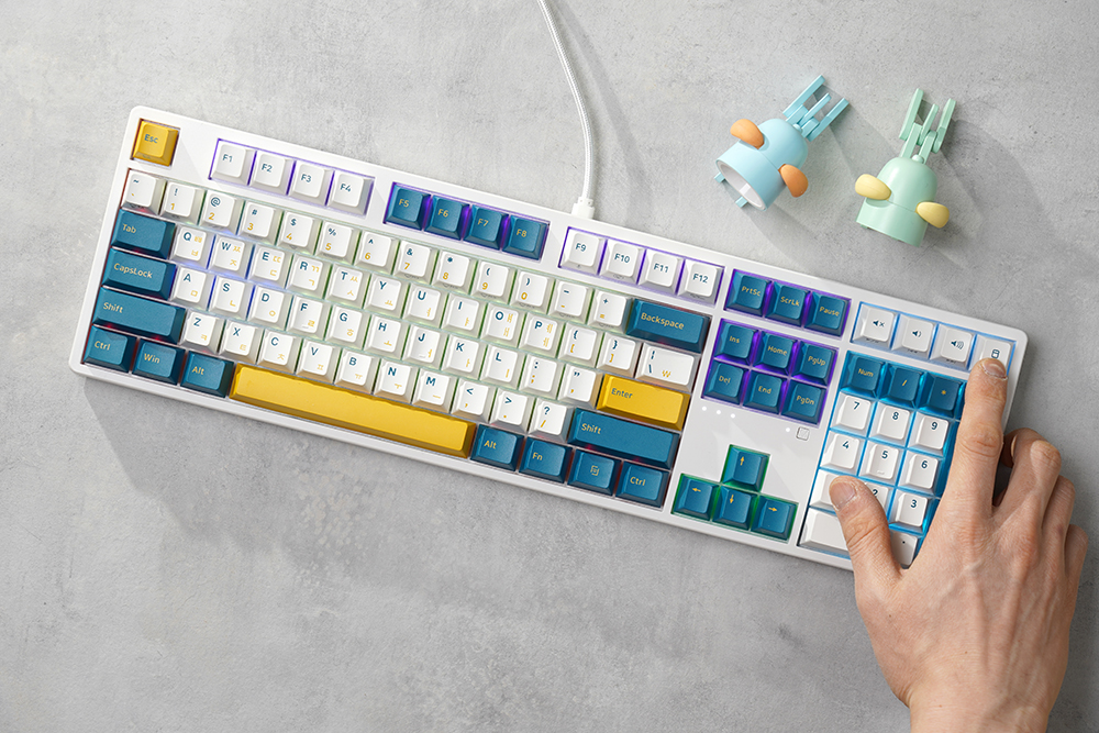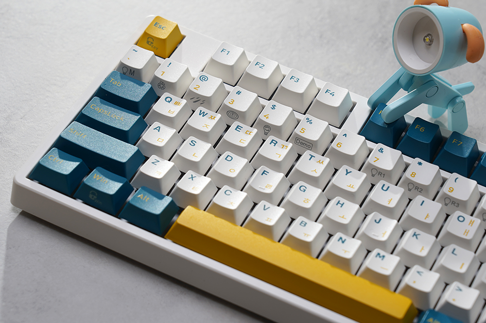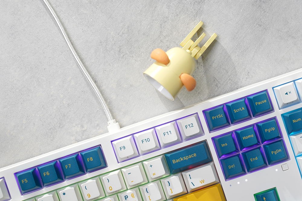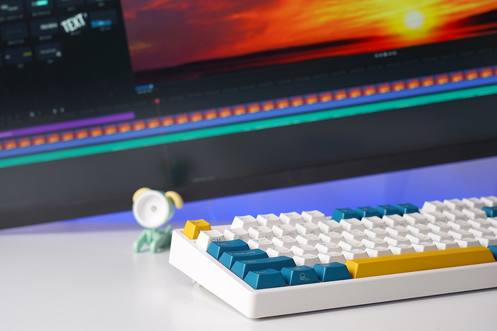 그리고 오랜 시간 작업을 해야 하는 디자이너들이 활용해도 좋습니다. 특히 크림 베이지와 딥 옐로우 그리고 딥 블루 3가지 색상으로 구성된 PBT 삼중 사출 키캡의 깔끔한 디자인과 촉감은 디자이너들도 만족할 수 있을 것 같습니다.