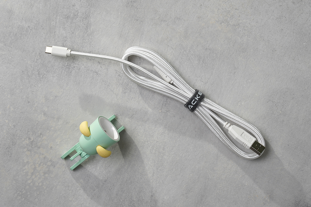 그리고 패브릭 소재로 마무리된 화이트 색상의 USB-C 케이블도 하나 포함되어 있습니다. 길이는 1.8m로 일반적으로 책상 위에서 사용하기에 크게 부담이 되는 편은 아니라고 판단되었습니다. 그리고 벨크로 테이프가 기분으로 부착되어 있어서 깔끔하게 케이블을 정리할 수 있습니다.