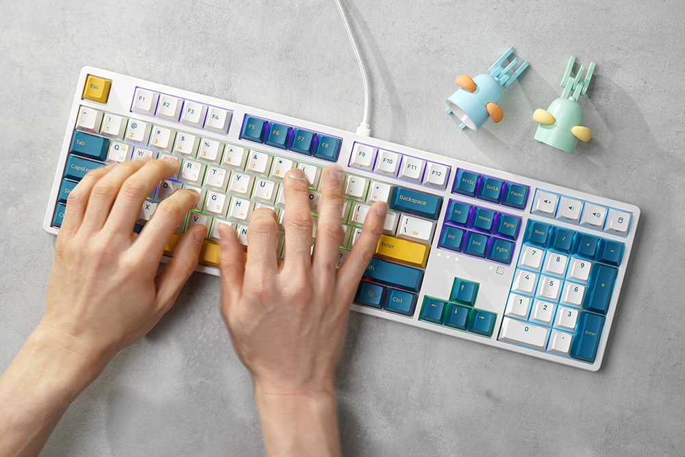그리고 오랜 시간 작업을 해야 하는 디자이너들이 활용해도 좋습니다. 특히 크림 베이지와 딥 옐로우 그리고 딥 블루 3가지 색상으로 구성된 PBT 삼중 사출 키캡의 깔끔한 디자인과 촉감은 디자이너들도 만족할 수 있을 것 같습니다.