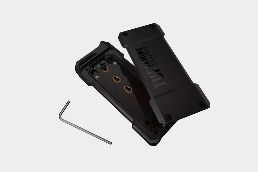 에이수스 TUF Gaming A1 외장 SSD 케이스의 내부 구조를 확인해 보면 Q-래치 구조를 적용해서 M.2 폼팩터의 SSD를 간단하게 교체할 수 있도록 설계되어 있습니다. 참고로 2242, 2260, 2280 사이즈의 제품을 설치해서 사용할 수 있습니다.