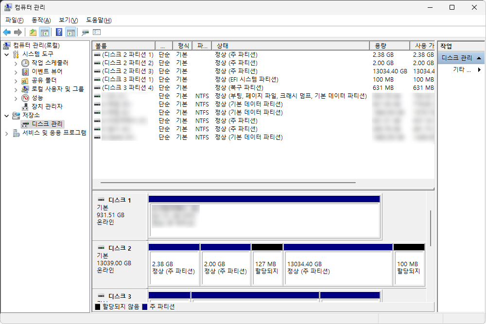 지금까지 시놀로지 NAS에서 사용하던 하드디스크(HDD)를 컴퓨터로 옮겨서 인식시키는 방법을 자세하게 확인해 보았습니다. 윈도우 11의 컴퓨터 관리 기능만 활용할 줄 알면 크게 어려운 부분은 없을 것으로 예상합니다. 그래서 만약 시놀로지 NAS에서 하드디스크 관련 오류가 발생한다면 컴퓨터로 옮겨서 크리스탈 디스크 인포와 같은 도구를 이용해서 한 번 확인해 보시길 바랍니다,