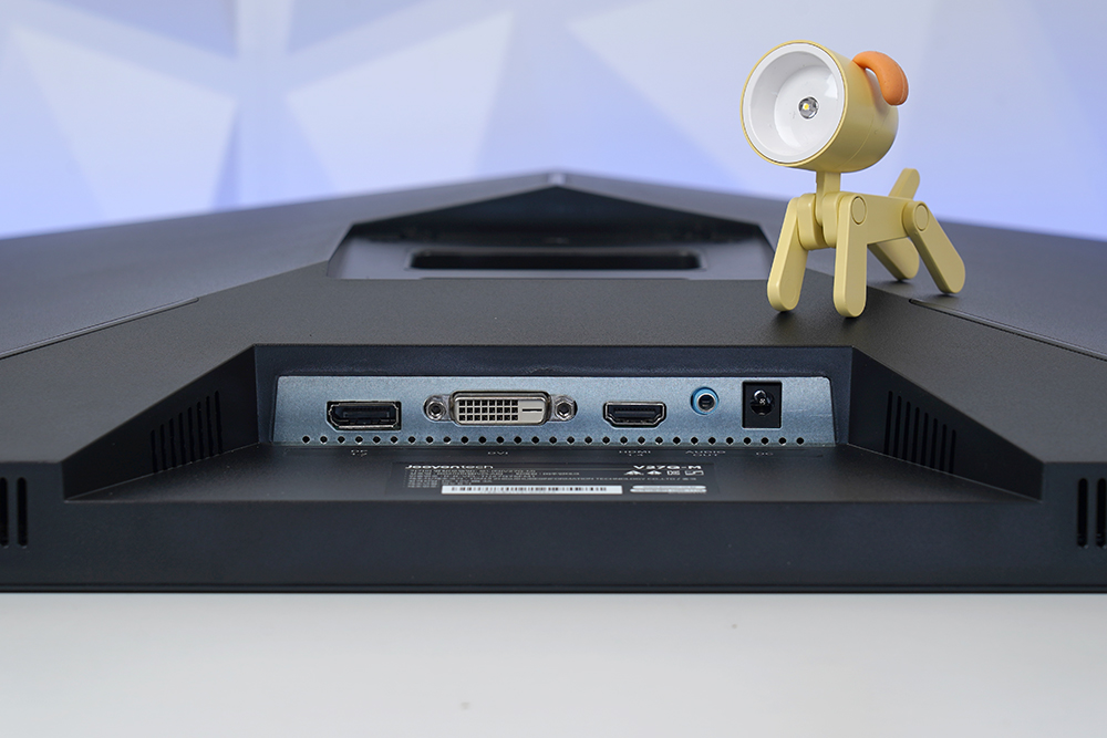 주연테크 V27Q-M 모니터의 입출력 단자를 살펴보면 DP 1.2와 HDMI 2.0 그리고 DVI와 이어폰, 전원으로 구성된 것을 확인할 수 있습니다. 연결 포트의 지원 범위가 넓은 편이어서 웬만한 장비들은 대부분 연결해서 사용할 수 있습니다.