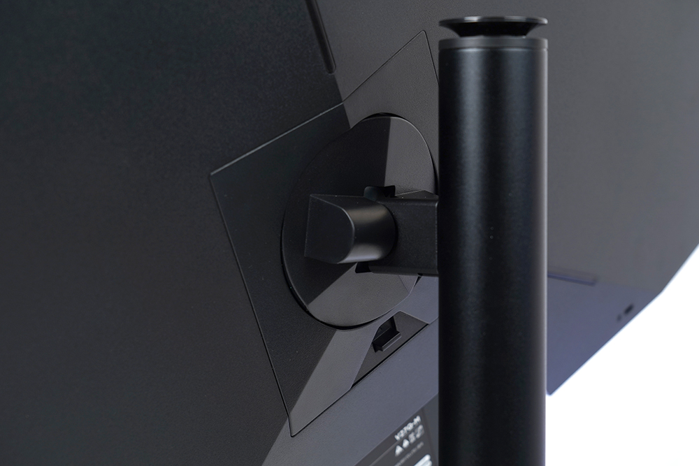 주연테크 V27Q-M 모니터의 스탠드는 별다른 도구 없이도 간단하게 조립을 할 수 있도록 설계되었습니다. (드라이버를 이용하면 더욱 단단하게 고정할 수 있습니다.) 그리고 분해 역시도 원터치 방식으로 간단하게 진행할 수 있습니다. 그 외에도 100x100mm 베사홀을 탑재해서 모니터 암에 연결해서 사용할 수도 있습니다.