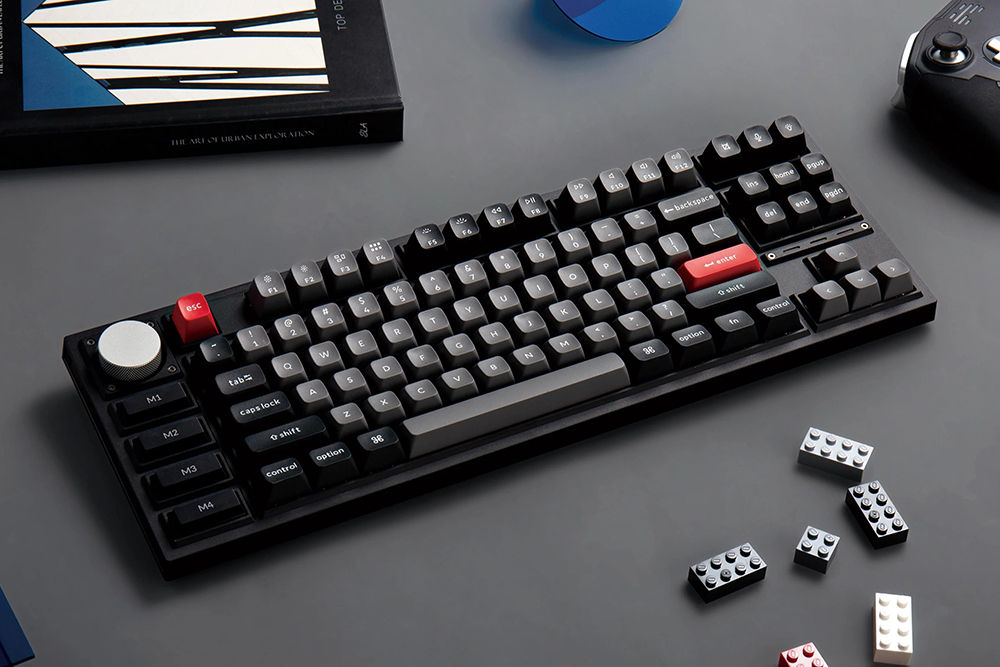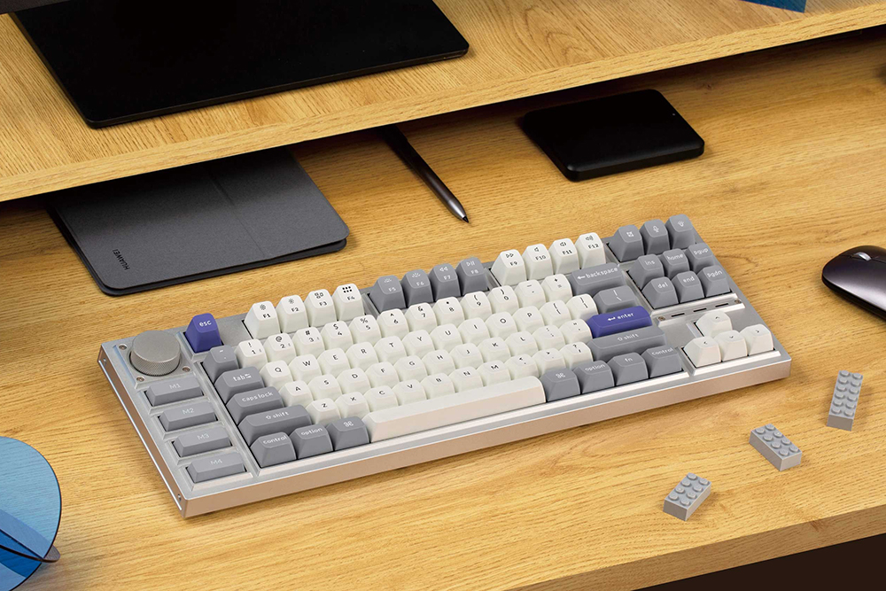 키크론 Q3 프로 무선 커스텀 키보드의 특징을 살펴보면 기본적인 레이아웃은 우리가 흔히 게임용으로 많이 사용하는 텐키리스를 채택하고 있습니다. 그런데 재미있는 부분은 왼쪽 요즘 유행하고 있는 노브와 함께 별도의 4개의 매크로 키를 탑재했다는 점입니다. 이 부분은 아래쪽에서 자세하게 다루어 보도록 하겠습니다.