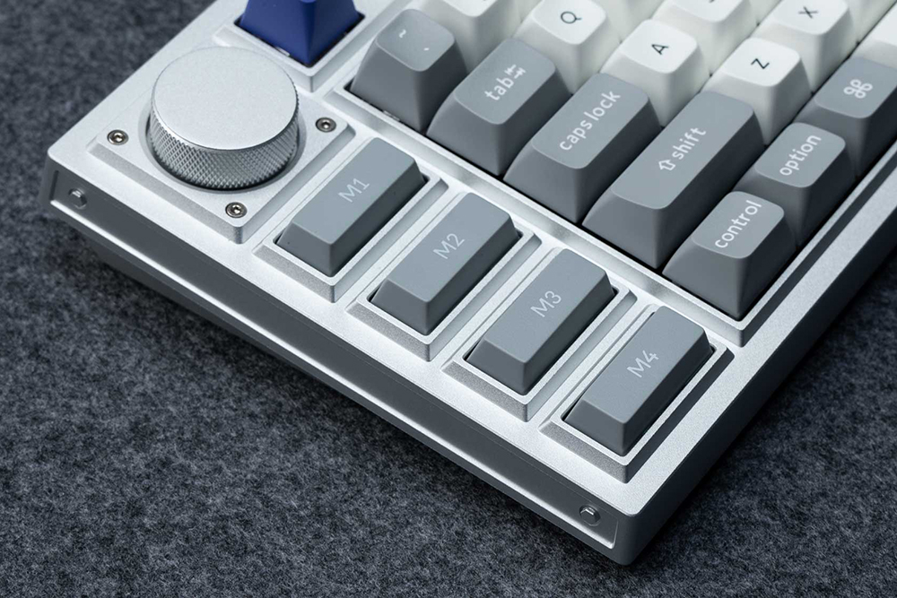 키크론 Q3 프로 무선 커스텀 키보드의 가장 재미있는 요소 중에 하나는 거대한 크기의 노브와 4개의 매크로 키를 탑재했다는 점입니다. 볼륨 조절 및 확대 및 축소 등 다양한 방식으로 활용할 수 있습니다.