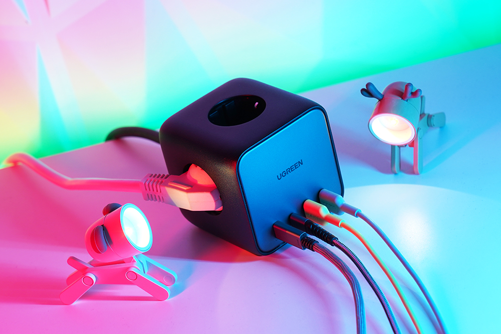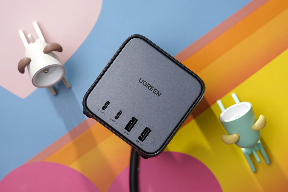 유그린 GaN 65W 멀티탭 + 멀티충전기에는 3개의 전기 아울렛과 총 4개의 USB 포트가 탑재되었습니다. 그래서 전기 장치들을 한 번에 사용하고 여러 전자기기를 충전시켜 줄 수 있습니다.
