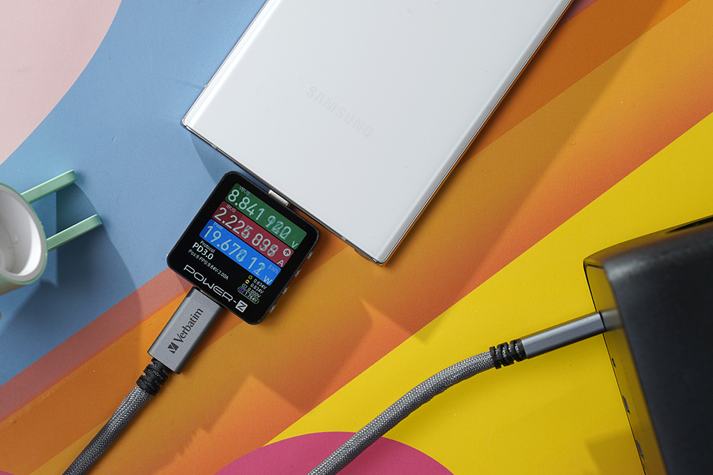 유그린 GaN 65W 멀티탭 + 멀티충전기의 USB-C 포트를 이용해서 충전 상태를 확인해 보면 우선 제가 사용하고 있는 삼성 갤럭시 S22 울트라의 경우에는 최대 약 19W 정도로 충전되었습니다.