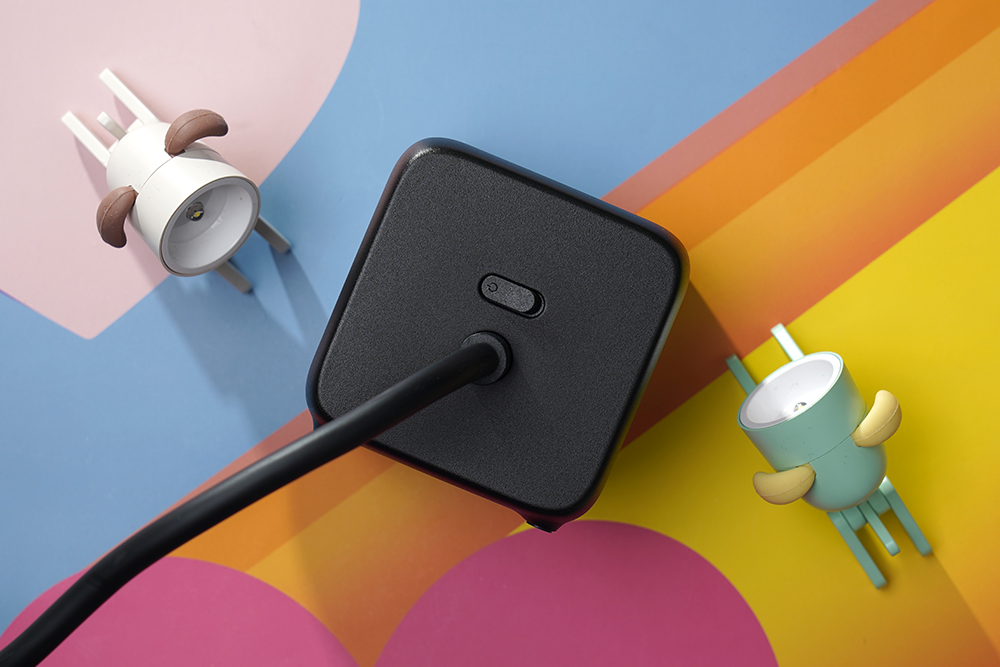 뒷면을 살펴보면 일체형 전기 케이블이 연결되어 있고 위쪽에는 별도의 전원 버튼이 배치되어 있습니다. 그래서 사용하지 않을 때는 전기 플러그를 분리하지 않고도 간단하게 멀티탭을 끌 수 있습니다.