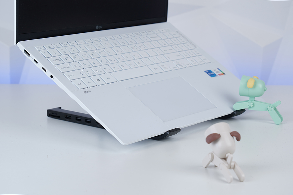 유그린 X-키트 홀더 허브 노트북 스탠드에 제가 사용하고 있는 LG 그램 16을 올려놓았는데요. 안정적으로 거치가 했지만, 각도를 너무 높인 상태에서 앞쪽 걸쇠 부분에 느슨하게 걸쳐진다면 앞으로 미끄러질 수 있으니 약간의 주의가 필요해 보였습니다. 참고로 노트북 스탠드르를 사용하면 발열 해소에도 도움을 주기 때문에 게이밍 노트북과 같은 고성능 제품을 활용하는 분들에게도 유용한 부분이 있습니다.