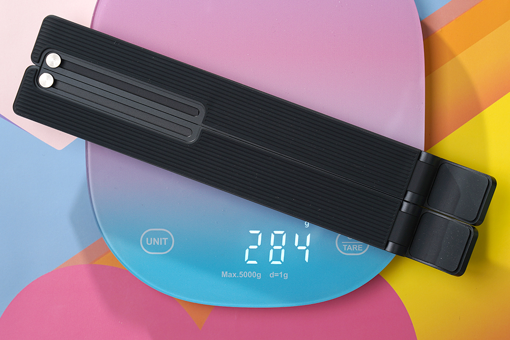 무게는 약 284g으로 측정되었습니다. 휴대하는데 크게 부담스러운 편은 아니어서 노트북과 함께 가지고 다닐 수 있습니다. 실제로 노트북 액세서리들은 휴대성이 그 무엇보다도 중요합니다.