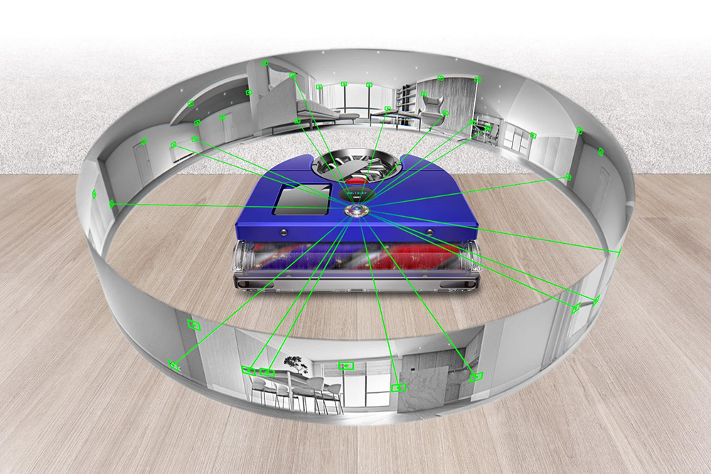 다이슨 로봇청소기에는 Dyson 360 Vis Nav라는 기술이 탑재되었습니다. 360도 비전 시스템(어안 렌즈)을 통해서 자신이 어디 있는지를 판단하고 청소할 위치를 파악할 수 있다고 합니다. 그리고 내장된 26개의 센서를 이용해서 먼지를 감지하고 장애물과 벽을 감지할 수 있다고 합니다.