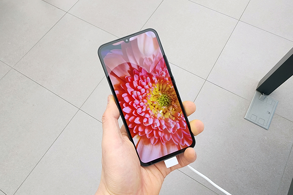 상단에는 U자 형태의 1,300만 화소의 카메라가 탑재되었습니다. 그리고 베젤의 두께도 보급형 제품답지 않게 상대적으로 얇은 편이라고 생각되었습니다. 전체적으로 신경을 많이 쓴 제품인 것 같습니다.