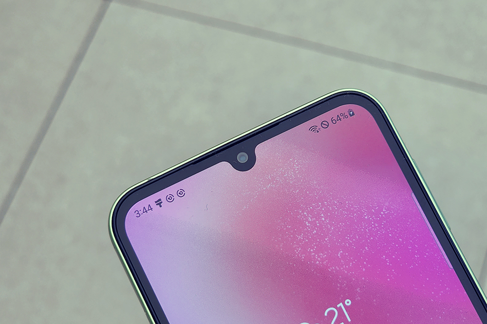삼성 갤럭시 A24에는 1,300만 화소(F2.2)의 전면 카메라가 탑재되었습니다. 그리고 보급형 제품이라서 펀치홀이 아닌 인피니티-U 스타일이 적용된 것을 확인할 수 있습니다.
