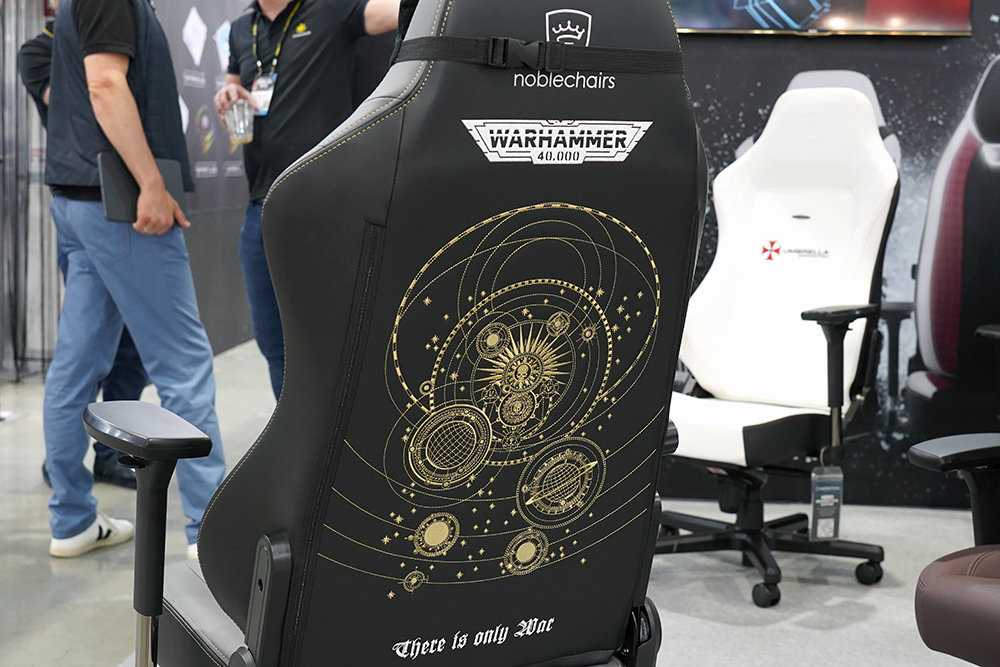 가장 먼저 살펴볼 제품은 노블체어(noblechairs) 히어로(HERO) 워해머 20K(Warhammer 40,000) 에디션입니다. 국내에서도 어느 정도의 인기를 가진 스페이스 오페라 미니어처 게임으로 전면과 후면의 자수 일러스트가 특히 인상적이었습니다. 해외에서는 엄청난 인기를 가진 미니어처 게임 시리즈라고 합니다.