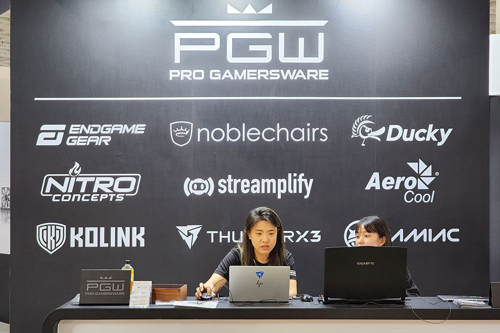 노블체어(noblechairs)의 컴퓨텍스 2023 부스는 PGW(PRO GAMERSWARE)라는 이름으로 엔드게임 기어(Endgame Gear)와 노블체어(noblechairs) 그리고 더키(DUCKY)와 같은 브랜드들과 함께 꾸며졌습니다. 다른 브랜드를 조금 생소할 수 있어서 더키 키보드는 국내에서도 어느 정도의 인지도가 있습니다.