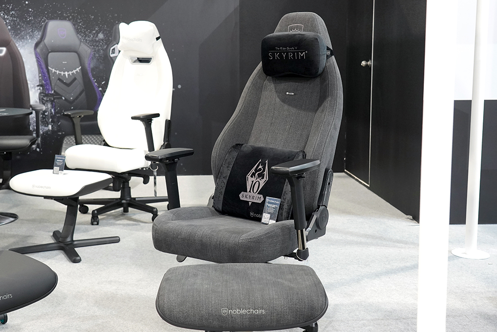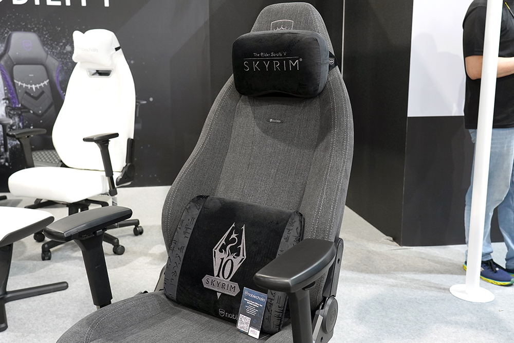 옆쪽에는 노블체어(noblechairs) 스카이림(SKYRIM)과 콜라보레이션으로 제작된 머리와 허리 쿠션이 준비되어 있었습니다. 구글링해보니 의자 자체는 스카이림 에디션의 게이밍 체어는 별도로 존재하는 것으로 보입니다.