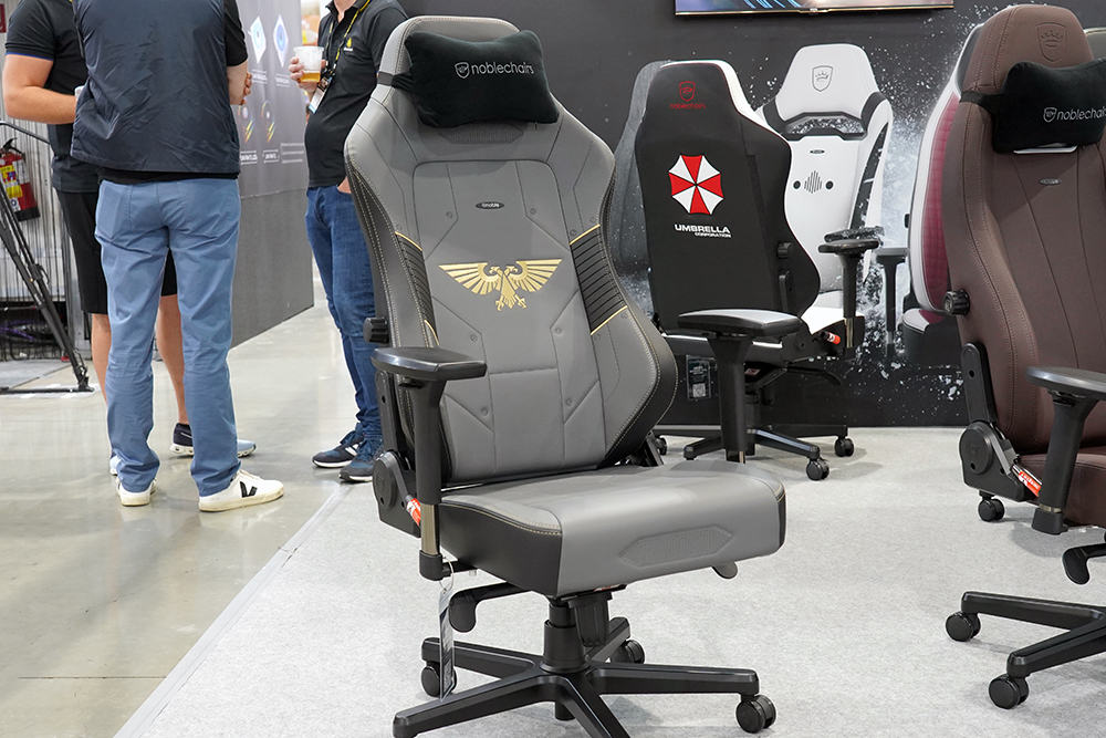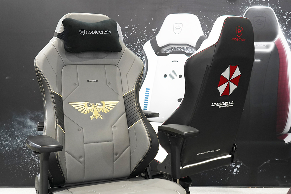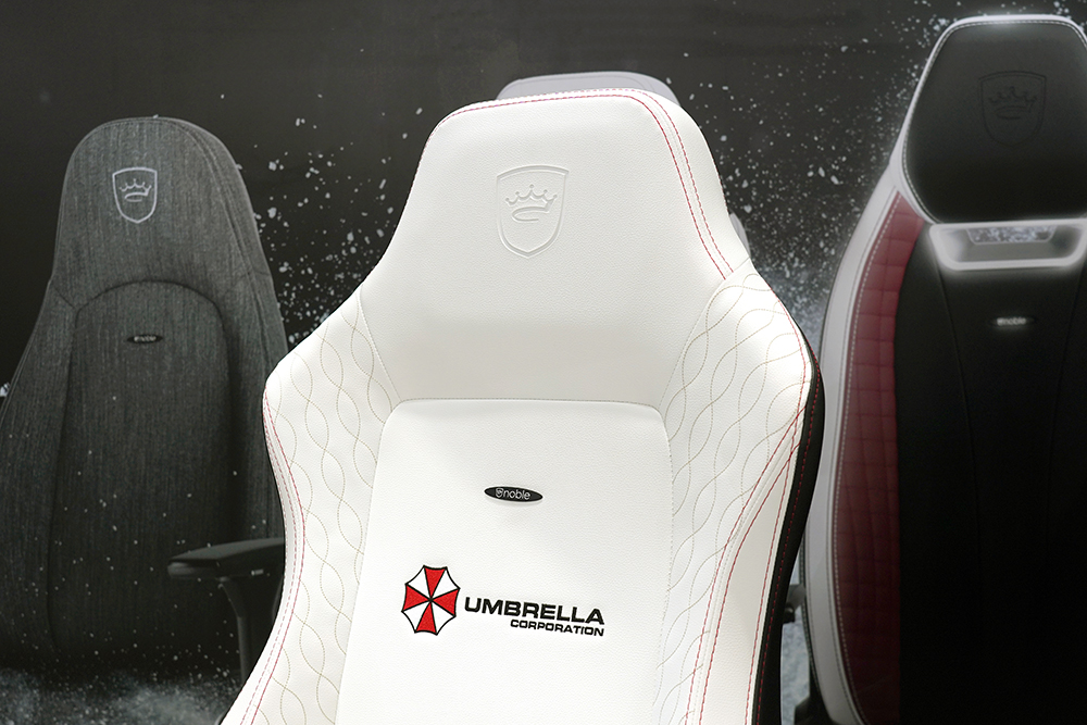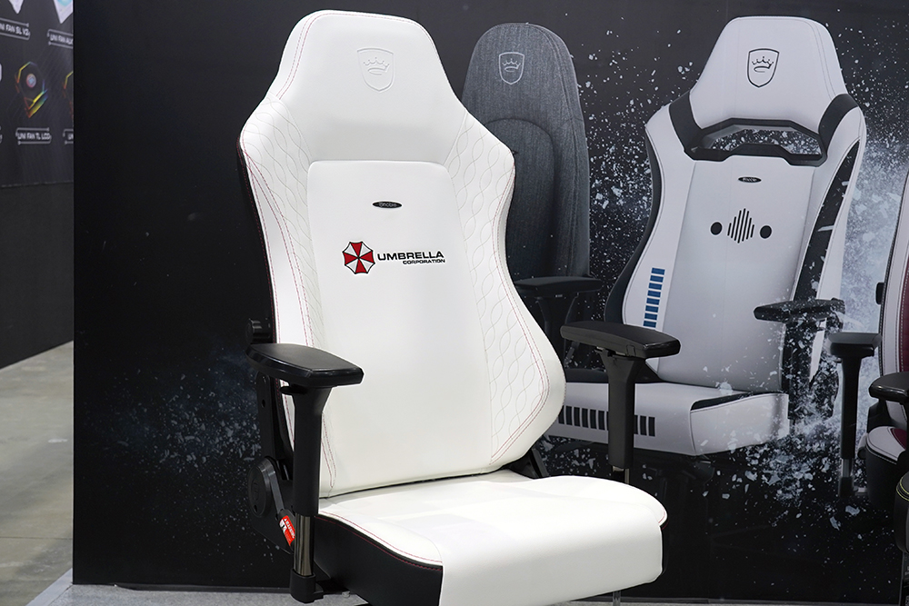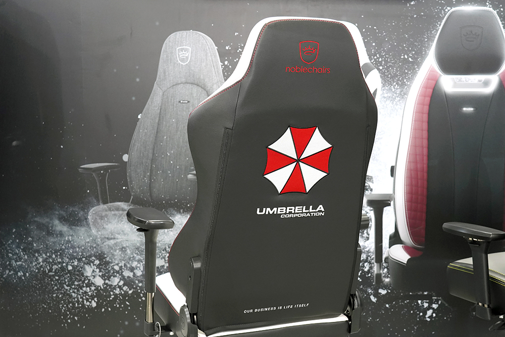 가장 저의 눈길을 끌었던 노블체어(noblechairs)의 제품은 바로 노블체어(noblechairs) 히어로(HERO) 레지던트 이블(REGIDENT EVIL) 에디션이었습니다. 국내에서도 워낙 팬들이 많은 시리즈이고 특히 체어 뒤판의 엄브렐라 회사 로고가 인상적이었습니다.