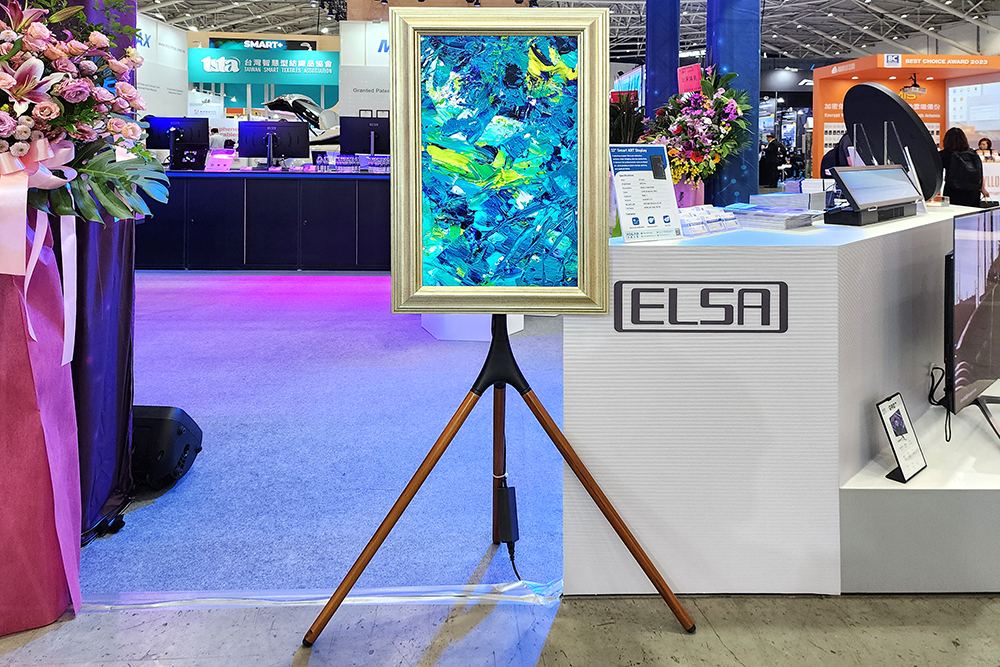 흡사 이젤과 같은 액자 형태로 디자인된 32인치 스마트 아트 디스플레이도 배치되어 있었습니다. 4K/UHD(3840 x 2160) 해상도의 디스플레이와 안드로이드 7.1.2 시스템을 탑재했다고 합니다. HDMI, DP와 같은 입력 포트도 갖추고 있어서 은근히 활용도가 높을 것 같습니다.