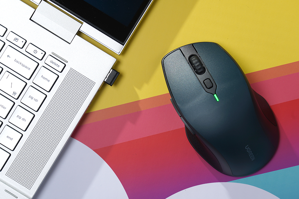 유그린(UGREEN) MU101 무선 마우스는 2.4G 무선 연결 방식을 제공합니다. 플러그 앤 플레이 방식으로 동작해서 수신기만 USB 포트에 장착하면 사용자가 연결 방법을 크게 고민할 필요가 없다는 장점이 있습니다.