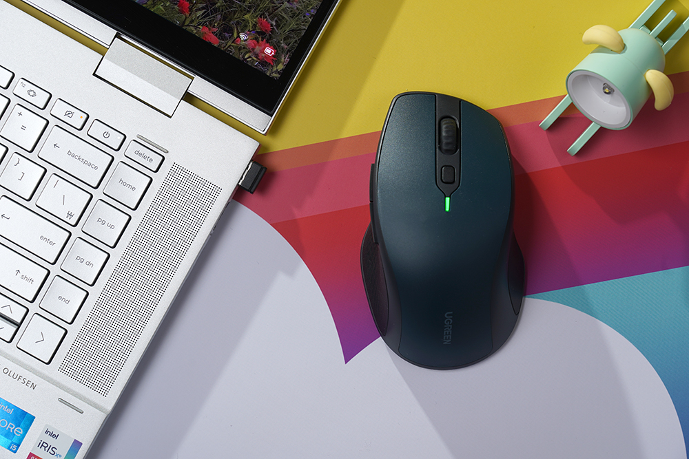 유그린(UGREEN) MU101 무선 마우스는 2.4G 무선 연결 방식을 제공합니다. 플러그 앤 플레이 방식으로 동작해서 수신기만 USB 포트에 장착하면 사용자가 연결 방법을 크게 고민할 필요가 없다는 장점이 있습니다.