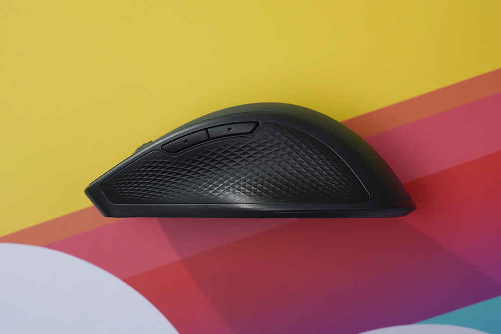 유그린(UGREEN) MU101 무선 마우스의 옆면을 살펴보면 뒤로와 앞으로 가기 버튼이 배치되어 있고 엄지손가락이 닿는 부위는 그립감을 높여주는 패턴이 각인되어 있는 것을 확인할 수 있습니다. 옆면 버튼이 없는 마우스들은 사용하기 조금 불편한 경우가 많습니다.