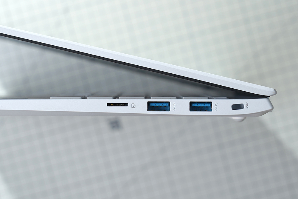 반대쪽 옆면에는 마이크로SD 카드 슬롯과 2개의 USB 3.2 Gen2 포트, 켄싱턴 락 홈이 배치되어 있습니다. 슬림한 제품이지만 확장성은 우수한 편이라고 판단되었습니다.