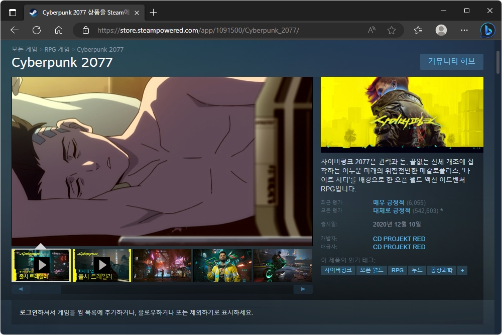 CD PROJEKT 의 사이버펑크 2077(Cyberpunk 2077)는 출시 초기에는 부족한 최적화로 많은 질타를 받았지만 시간이 지나면서 대부분의 버그는 수정되었고 넷플릭스에서 사이버펑크: 엣지러너라는 애니메이션이 공개되면서 오히려 인기가 높아졌습니다. 참고로 가격은 50% 할인을 해서 33,000원이고 사이버펑크 2077 & 팬텀 리버티 번들 예약 구매는 62,470원입니다.