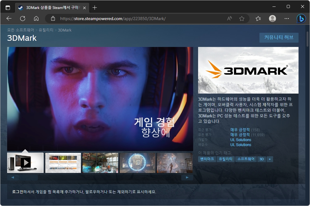 마지막 게임은 UL 벤치마크에서 제작한 3DMARK입니다. 그래픽카드의 성능을 평가하는데 주로 사용되는데요. 조금이라도 숫자를 높이기 위해서 많은 게이머가 엄청난 돈과 노력을 쏟아붓고 있습니다. 참고로 가격은 75% 할인해서 9,370원입니다.