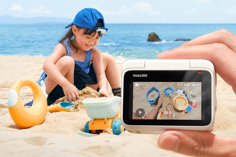 인스타360 GO 3의 기본 액세서리인 액션팟에는 플립형 터치스크린이 탑재되어 있어서 다양한 용도로 활용할 수 있고 카메라 원격 제어와 실시간 미리보기와 같은 기능을 제공합니다. 그리고 촬영 옵션이나 설정을 빠르게 변경할 수 있도록 도와주는 역할도 겸하고 있습니다. 참고로 액션팟은 IPX4 생활 방수를 지원하고 카메라 자체는 IPX8 5미터 방수를 기본으로 제공합니다.