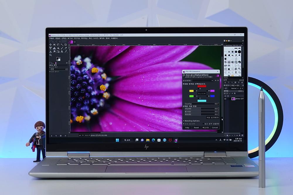 HP 엔비 x360 15에 탑재된 12세대 인텔® 코어™ i5 프로세서와 인텔® Iris® Xe 내장 그래픽카드는 간단한 동영상 컷 편집 정도는 크게 무리 없이 할 수 있는 수준의 성능을 제공합니다.