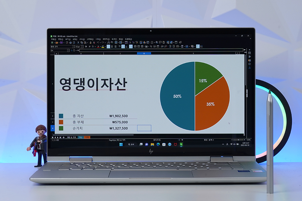 HP 엔비 x360 15에는 백라이트 내장 키보드와 HDMI 2.1 단자가 내장되어 있습니다. 그래서 문서 작업을 하고 프로젝터를 연결해서 프레젠테이션을 진행할 수 있습니다.