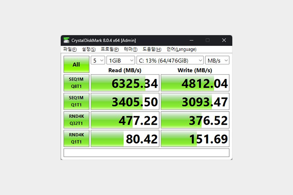HP 엔비 x360 15에는 512GB 용량의 PCIe® Gen4 NVMe™ M.2 SSD가 탑재되었습니다. 최신 규격의 제품이라서 속도가 상당히 빠른 편이라는 것을 확인할 수 있습니다.