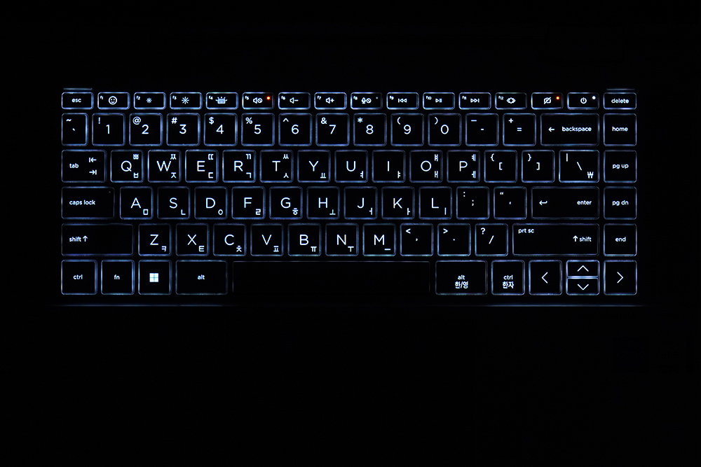 HP 엔비 x360 15에는 풀 사이즈 백라이트 키보드가 탑재되었습니다. 특히 상황에 따라서 켜고 끌 수 있는 화이트 컬러의 백라이트가 탑재되어 있어서 야간에도 각종 작업을 할 수 있습니다.