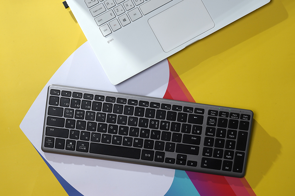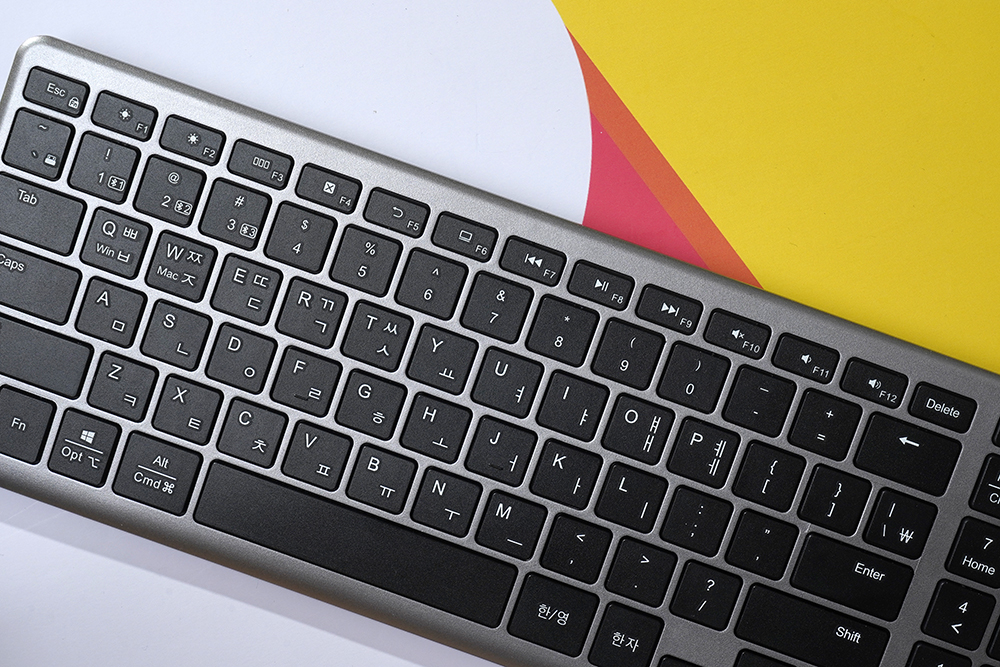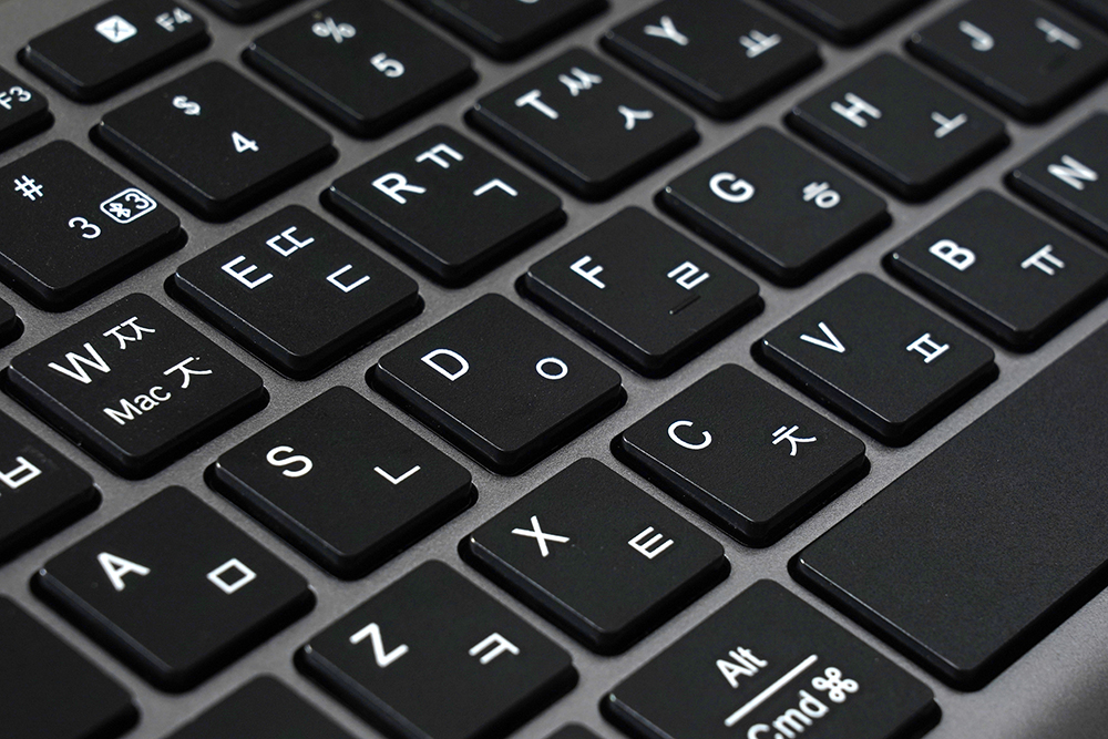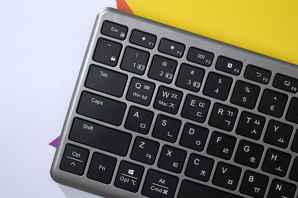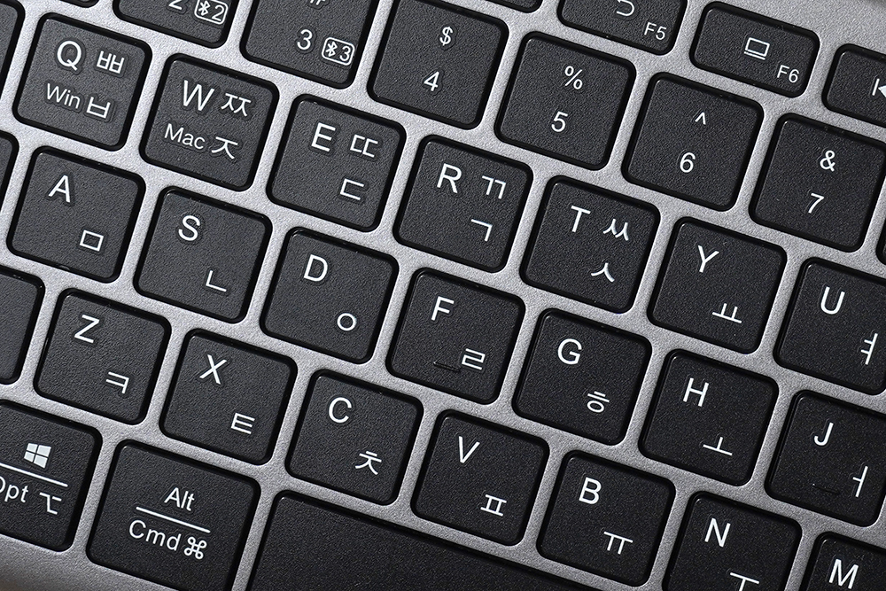 유그린 UGREEN 블루투스/2.4G 무선 키보드는 직구로 구매해야 하는 제품이지만 한국어 키캡 각인을 지원합니다. UV 실크 스크린으로 마무리되었는데요. 영문 자판에 익숙하지 않은 분들도 조금 더 편리하게 활용할 수 있을 것으로 예상합니다.