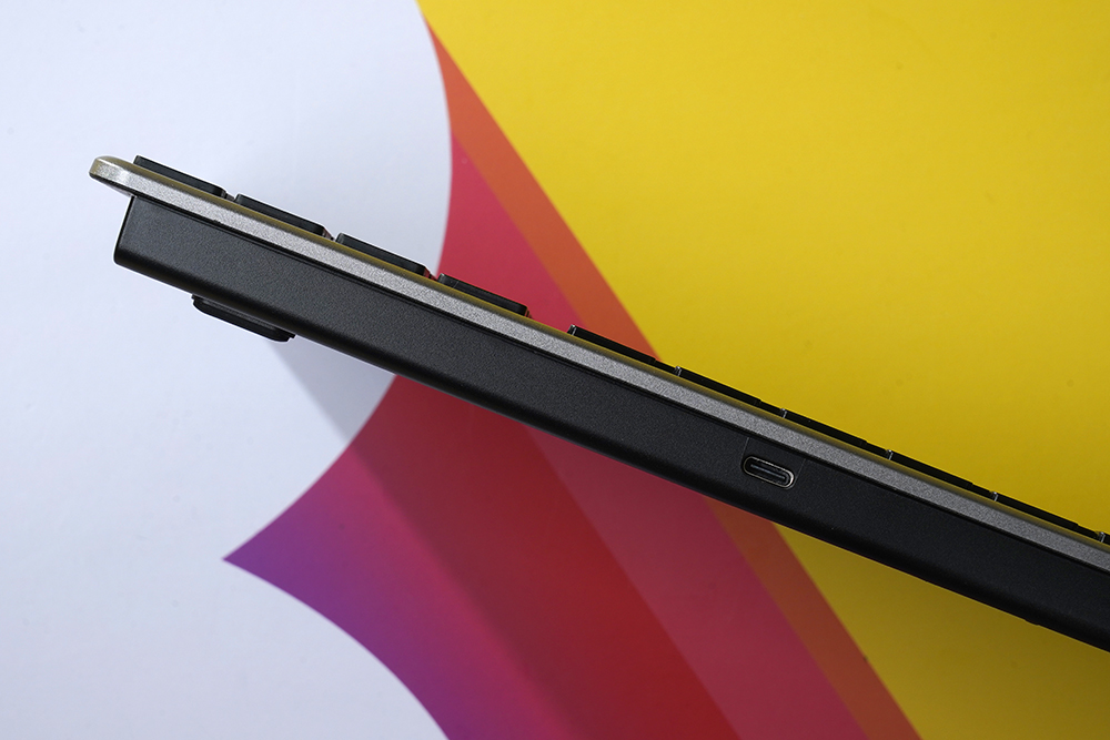 유그린 UGREEN 블루투스/2.4G 무선 키보드의 위쪽에는 USB-C 포트가 배치되어 있습니다. 동봉된 USB-C 케이블을 이용해서 본체를 충전하는 용도로 활용할 수 있습니다.