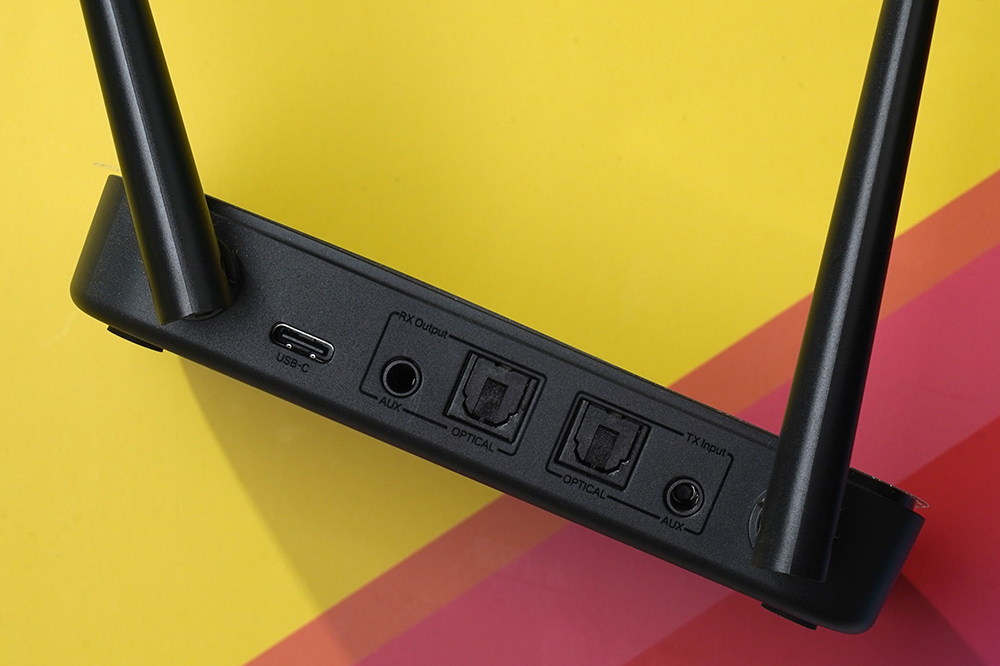 유그린 UGREEN 블루투스 송수신기의 뒷면을 살펴보면 USB-C 포트와 RX Output과 TX Input에 각각 3.5mm AUX, Optical 단자가 배치되어 있습니다. 사용 패턴에 맞게 케이블을 연결해서 사용해주면 됩니다.