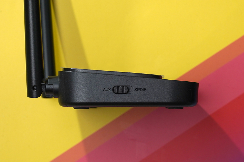 반대쪽 옆면에는 AUX와 SPDIF(오디오 광케이블) 슬라이드 스위치가 탑재되었습니다. 음질을 우선하시는 분들은 소스 기기와 옵티컬 케이블을 사용해서 연결하는 것을 추천합니다.