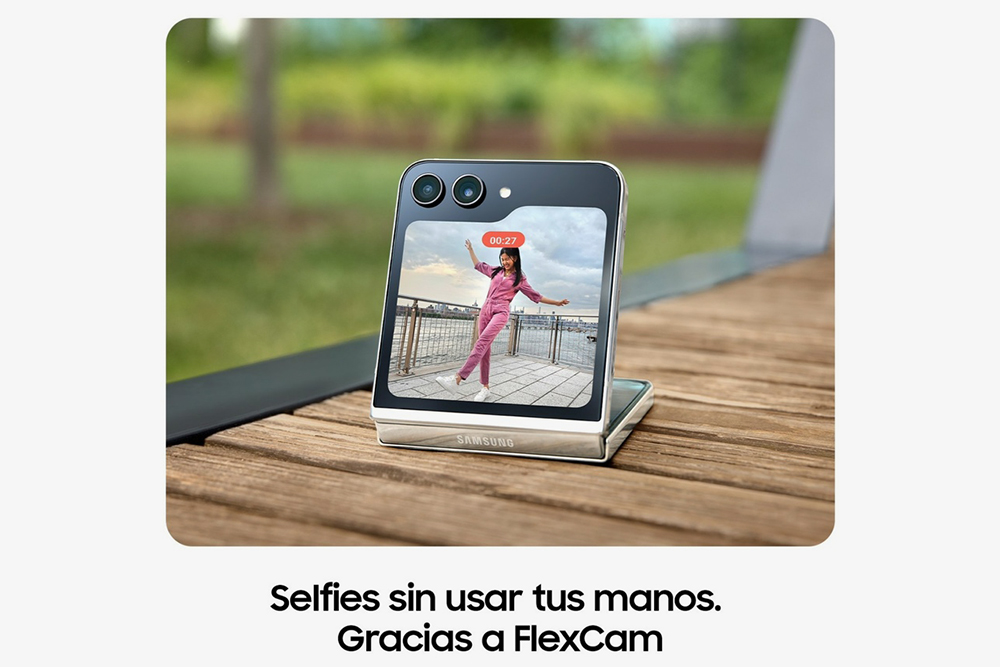 삼성 갤럭시 Z 플립5의 외부에는 듀얼 카메라가 배치되어 있습니다. 1,200만 화소의 광각과 초광각으로 구성되어 있을 것으로 예상되고 프리스탑 힌지와 결합해서 다양한 방식으로 활용할 수 있을 것으로 예상합니다.