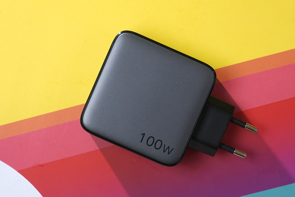 반대쪽 옆면을 살펴보면 100W 출력을 지원한다는 문구가 표시되어 있습니다. 사실 질화 갈륨(GaN) 기반의 어댑터들이 처음 출시될 때만 하더라도 노트북들이 65W PD 입력을 지원했지만, 최신 기종들은 100W PD 입력을 받을 수 있으므로 저는 100W 이상의 제품을 구매해서 사용하는 것을 추천합니다.